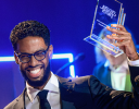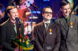 På bilden tar humorgruppen KAJ emot priset Årets finlandssvensk. De har också fått flera andra pris det här året.