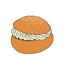 Bullen är fylld med vispad grädde och sylt eller mandelmassa.